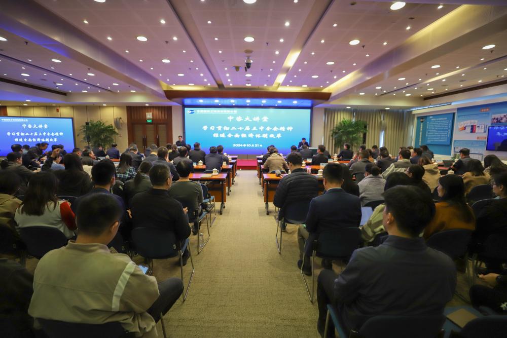 2024年10月21日下午,公司舉辦中咨大講堂之“學(xué)習(xí)貫徹黨的二十屆三中全會精神 推進(jìn)全面經(jīng)濟(jì)體制改革”講座暨黨委理論學(xué)習(xí)中心組學(xué)習(xí)(擴(kuò)大)會。公司黨委書記、董事長茍護(hù)生主持講座。公司在京領(lǐng)導(dǎo)出席。 講座特邀中國宏觀經(jīng)濟(jì)學(xué)會會長徐善長作專題授課。徐會長結(jié)合多年工作經(jīng)驗和研究收獲,圍繞落實黨的二十屆三中全會部署要求,從堅持和落實“兩個毫不動搖”、構(gòu)建全國統(tǒng)一大市場、完善市場經(jīng)濟(jì)基礎(chǔ)制度等方面,全面系統(tǒng)闡釋了他關(guān)于構(gòu)建高水平社會主義市場經(jīng)濟(jì)體制的思考和體會。 徐會長指出,要堅持市場導(dǎo)向,充分發(fā)揮市場機(jī)制在資源配置中的決定性作用;要注重政府的經(jīng)濟(jì)治理職能,為市場有效配置資源和經(jīng)濟(jì)有序運(yùn)行創(chuàng)造良好環(huán)境;要從提高創(chuàng)新力、競爭力、治理力、影響力、引領(lǐng)力等方面,加快建設(shè)更多世界一流企業(yè)。 他表示,構(gòu)建高水平社會主義市場經(jīng)濟(jì)體制是一個系統(tǒng)工程,需要全社會共同努力,政府、企業(yè)、社會各界都應(yīng)積極參與,上下聯(lián)動形成合力,持續(xù)不斷推動改革發(fā)展。 徐會長還對《中共中央關(guān)于進(jìn)一步全面深化改革、推進(jìn)中國式現(xiàn)代化的決定》關(guān)于“高水平社會主義市場經(jīng)濟(jì)體制是中國式現(xiàn)代化的重要保障”做出進(jìn)一步詮釋,指出高質(zhì)量發(fā)展是推進(jìn)中國式現(xiàn)代化的首要任務(wù),構(gòu)建促進(jìn)高質(zhì)量發(fā)展的經(jīng)濟(jì)體制為中國式現(xiàn)代化提供強(qiáng)大動力和制度保障。 交流環(huán)節(jié),徐會長表示,中咨公司要進(jìn)一步聚焦國家重大戰(zhàn)略、重大規(guī)劃和重大工程,充分發(fā)揮自身優(yōu)勢,為黨中央科學(xué)決策和國家重大戰(zhàn)略部署提供有力支撐。 茍護(hù)生代表公司黨委對徐會長的精彩授課表示感謝。他指出,此次講座為中咨公司深入學(xué)習(xí)貫徹黨的二十屆三中全會精神、加快建設(shè)國家高端智庫和世界一流咨詢機(jī)構(gòu)提供了有力指導(dǎo)。廣大干部職工要以高度的責(zé)任感、使命感更好地履職盡責(zé),不斷加強(qiáng)政治理論學(xué)習(xí)和政策法規(guī)學(xué)習(xí),提升能力素養(yǎng)和服務(wù)意識,用中咨軟實力支撐國家硬發(fā)展。公司也將繼續(xù)致力于搭建高質(zhì)量學(xué)術(shù)交流平臺,為國家經(jīng)濟(jì)發(fā)展和社會進(jìn)步貢獻(xiàn)更多智慧和力量。 公司總部及所屬企業(yè)相關(guān)同志現(xiàn)場聆聽講座。 | |||||