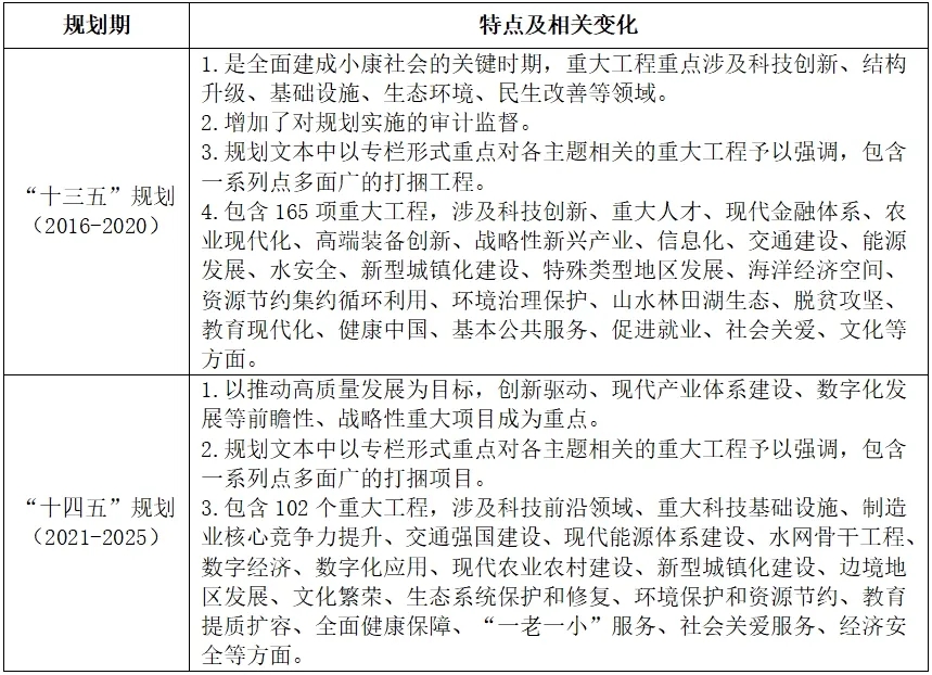五年規劃(計劃)文本中重大工程的歷史回顧 李欣玨 曹玫 習近平總書記指出,編制和實施國民經濟和社會發展五年規劃,是我們黨治國理政的重要方式。重大工程作為五年規劃(計劃)中的核心內容,承載著實現國家戰略目標的重要使命,也是衡量和體現國家綜合實力和發展水平的重要標志。新中國成立以來,我國共編制和實施了14個五年規劃(計劃)。從“一五”計劃到“十四五”規劃,每一個五年規劃(計劃),國家都要確定百余項重大工程項目作為帶動經濟社會發展的火車頭。14個五年規劃(計劃)確定的約兩千項重大工程項目,記錄著七十余年非凡成就背后的艱辛和輝煌。以五年規劃(計劃)為引領,以重大工程項目為牽引,我國經濟社會發展取得了全方位、開創性歷史成就,發生了深層次、根本性歷史變革,為建設社會主義現代化國家奠定了堅實基礎。即將迎來的“十五五”時期是我國承上啟下的重要時期,是2035年基本實現社會主義現代化的關鍵階段,也是七大深化改革任務的完成期,更是應對復雜安全威脅的高危期,在“十五五”規劃中接續謀劃一批計長遠、促發展、利民生的重大工程項目意義重大。 作為國內規模最大的綜合性工程咨詢機構和中央政府在投資建設領域的重要咨詢單位,自1982年成立以來,中國國際工程咨詢有限公司承擔了我國幾乎所有重大工程項目的咨詢評估任務,深切感受到重大工程項目在現代化強國建設中發揮的重要作用。本文從歷史維度出發,從計劃經濟時期、計劃經濟體制向社會主義市場經濟體制轉軌時期、社會主義市場經濟體制基本建立時期、社會主義市場經濟體制完善時期等四個階段,對歷次五年規劃(計劃)文本中重大工程的特點及變化進行系統回顧。 一、計劃經濟體制時期(“一五”至“五五”) 有計劃地發展國民經濟,是新中國成立后的既定方針。為迅速恢復國民經濟并推進工業化進程,借鑒前蘇聯經驗,我國從1953年開始實施第一個五年計劃。“一五”計劃的基本任務是集中主要力量進行以前蘇聯幫助中國設計的156個建設單位為中心的、由限額以上的694個建設單位組成的工業建設,建立我國社會主義工業化的初步基礎。這一時期,重大工程項目主要集中在工業領域,項目涵蓋鋼鐵、煤炭、電力、機械、化工等多個行業。在第一屆全國人民代表大會第二次會議審議通過的《關于發展國民經濟的第一個五年計劃的報告》中,各領域重大工程以文字形式體現,一般出現在措施、要求、布局、任務等小節,包括建設或改建長春第一汽車廠、鞍山鋼鐵聯合企業、沈陽第一機床廠等生產性企業,以及建設武漢長江大橋、青藏鐵路、康藏公路等大型單體項目等。此外,還在計劃中明確了各行業領域的投資額度分配和生產性單位的產能目標,計劃性特點較為突出。此后,一大批舊中國沒有的基礎工業部門開始逐步建立,第一批國產汽車出廠、第一架國產飛機試飛、第一座原子反應堆投入運轉。第一個五年計劃的實施奠定了新中國的工業化基礎。 表1 “一五”計劃中的156個重點項目 注:作者根據《第一個五年計劃(1953—1957)》等公開資料整理。 隨后,“二五”至“五五”計劃時期,國家相關部門未正式印發計劃文本。在此期間,雖受到“大躍進”“文化大革命”等政治運動的干擾和影響,國家仍集中力量推進了一批重大工程項目,如“兩彈一星”、南京長江大橋、成昆鐵路、劉家峽水電站和大慶油田等,這些項目在科技創新、基礎設施建設等方面取得了顯著成就。“一五”到“五五”,僅用5個五年計劃的時間,我國基本形成了獨立的、比較完整的工業體系和國民經濟體系,為開展社會主義建設積累了經驗。 二、計劃經濟體制向社會主義市場經濟體制轉軌時期(“六五”至“九五”) 改革開放后,我國逐步從計劃經濟體制向社會主義市場經濟體制轉軌。這一階段的五年計劃在繼續強調經濟發展的同時,開始注重社會事業的協調發展,表明在發展戰略上,從片面追求工業特別是重工業產值產量的增長,開始轉向以提高經濟效益為中心,注重農輕重協調發展,注重經濟、科技、教育、文化、社會的全面發展。計劃名稱也從“國民經濟發展五年計劃”更名為“國民經濟和社會發展五年計劃”。重大工程項目不再局限于工業領域,相應擴展到農業、交通、能源、科技、教育等多個領域。 表2 “六五”至“九五”計劃中的重大工程特點 注:作者根據《建國以來國民經濟和社會發展五年計劃重要文件匯編》等公開資料整理。 “六五”時期國家的主要任務是繼續貫徹執行1979年黨中央提出的“調整、改革、整頓、提高”八字方針。隨著全黨全國工作重心的轉移,“六五”計劃的重大工程安排也以提高經濟效益為中心。從體現形式看,重大工程按經濟部門編制,分布在計劃文本的主要措施中;從涉及領域看,主要集中在能源和交通運輸建設領域,同時適當安排了農業及輕紡、冶金、化學、建材等建設項目,對教育、科學、文化、衛生、城市建設、商業外貿等社會領域的重大工程也做出相應安排,提出科技發展具體任務;從實施管理看,要求編制統一的固定資產投資計劃,明確審批建設等制度程序。 “七五”時期國家的主要任務是進一步為經濟體制改革創造良好的經濟環境和社會環境,“七五”計劃的重大工程體現在加強重點建設、技術改造和智力開發方面。