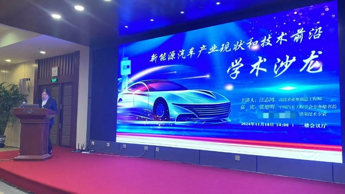 活動邀請高技術業務部總工程師汪志鴻作主題報告。他結合項目咨詢和研究經歷,以及對行業的觀察和思考,深度分析了我國新能源汽車產業發展的現狀及未來技術發展趨勢,現場反響熱烈。