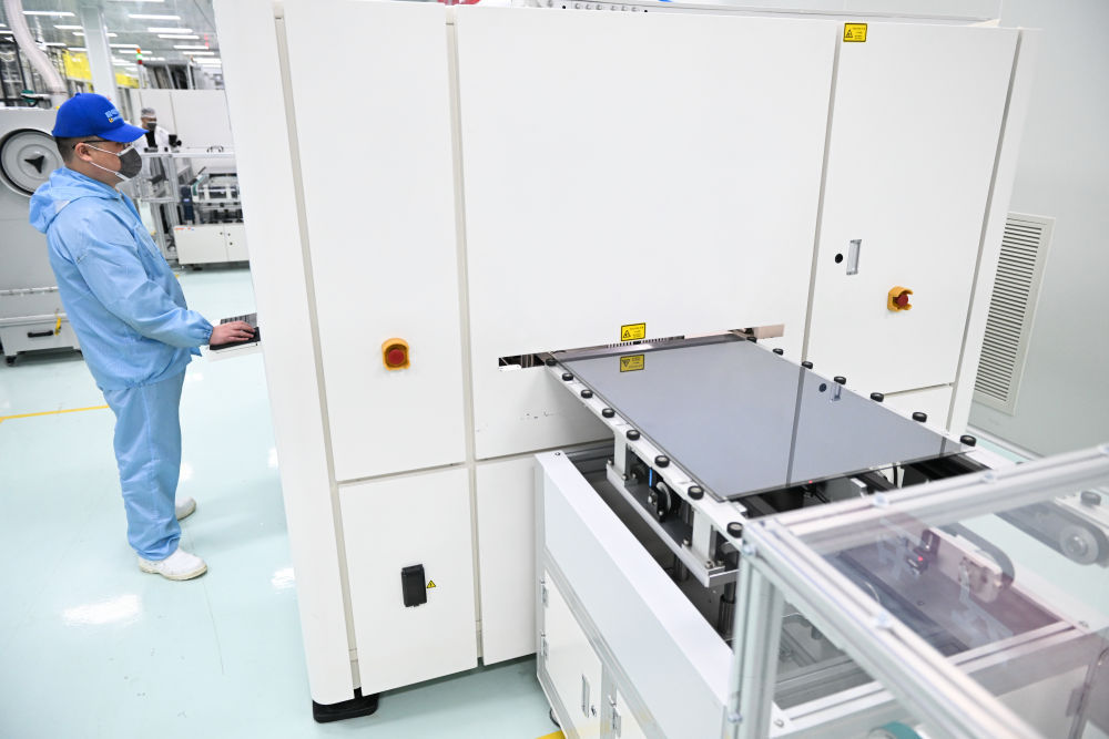 2024年2月29日,在位于江蘇省無錫市錫山區(qū)的極電光能有限公司智能生產(chǎn)車間,鈣鈦礦光伏組件正在自動化生產(chǎn)線上進(jìn)行激光劃刻工藝。新華社記者 季春鵬 攝 觀浩瀚宇宙,中國航天2024年預(yù)計發(fā)射約百次,多個衛(wèi)星星座加速組網(wǎng),探索星辰的腳步正化作產(chǎn)業(yè)發(fā)展的動能。