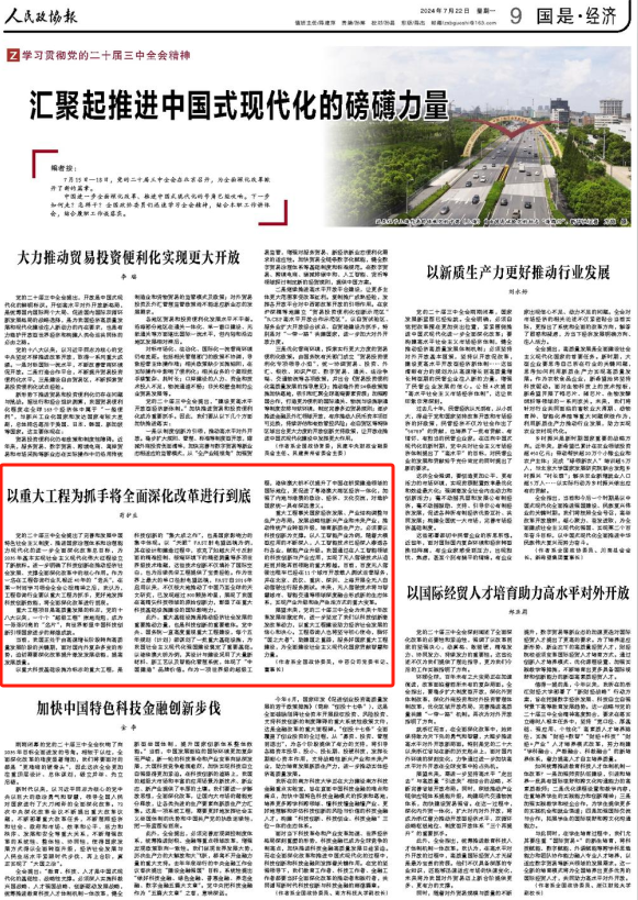 以重大工程為抓手將全面深化改革進行到底茍護生 黨的二十屆三中全會提出了完善和發展中國特色社會主義制度、推進國家治理體系和治理能力現代化的進一步全面深化改革總目標,為2035年基本實現社會主義現代化偉大征程設立了新航標。進一步明確了科技創新在推動經濟社會發展、支撐全面深化改革中的核心作用。作為一名在工程咨詢行業扎根近40年的“老兵”,在第一時間學習領會全會公報精神之后,我認為,工程咨詢行業要以重大工程為抓手,更好地發揮科技創新效能,將全面深化改革進行到底。 重大工程項目是高質量發展的標志,黨的十八大以來,一個個“超級工程”拔地而起,成為一張張閃亮的“名片”,向世界彰顯中國科技創新引領國家進步的輝煌成就。 當前,我國正處于由高速增長階段轉向高質量發展階段的關鍵期,面對國內外復雜多變的形勢,迫切需要深化改革提升激發發展動能,提高發展質量。 以重大科技基礎設施為標志的重大工程,是科技創新的“集大成之作”,也是國家影響力的集中體現。以“天眼”FAST射電望遠鏡為例,其在設計和建造過程中,攻克了如超大尺寸反射面的精準控制、極端環境下的精密測量等多項世界級技術難題,這些技術創新不僅填補了國際空白,也為后續類似工程提供了寶貴經驗。作為世界上最大的單口徑射電望遠鏡,FAST自2016年啟用以來,極大地推動了中國乃至全球的天文研究,已發現超過300顆脈沖星,展現了我國在高精尖科技領域的原始創新力,彰顯了在重大科技基礎設施建設的國際影響力。 此外,重大基礎設施是推動經濟社會發展的重要推動力量,也是科技創新的重要載體。黨中央、國務院一直高度重視重大工程建設,每個五年規劃(計劃)都謀劃了一批重大基礎設施,為我國社會主義現代化強國建設奠定了重要基礎。以港珠澳大橋為例,其設計與建設采用了大量新材料、新工藝以及智能化管理系統,體現了“中國建造”品牌價值。作為一項世界級的超級工程,港珠澳大橋不僅提升了中國在橋梁建造領域的國際地位,更促進了粵港澳大灣區經濟一體化,加強了內地與港澳的政治、經濟、文化交流,對維護國家統一具有深遠意義。 重大工程事關國家經濟發展、產業結構調整與生產力布局。發展戰略性新興產業和未來產業,推動傳統產業轉型升級,培育新質生產力,必須要以科技創新為支撐。以人工智能產業為例,隨著大模型應用的不斷深入,人工智能技術已經深入滲透各行各業,賦能產業升級。我國通過在人工智能領域的科技創新與產業應用,實現了無人駕駛技術從追趕到并跑再到領跑的重大跨越。目前,百度無人駕駛出租車已經在11個城市開放載人測試運營服務,并在北京、武漢、重慶、深圳、上海開展全無人自動駕駛出行服務測試。未來,無人駕駛技術將與智慧城市、智能交通等領域深度融合形成新的生態體系,實現產業升級和生產生活方式的重大變革。 展望未來,黨的二十屆三中全會為未來十年改革發展舉旗定向,進一步堅定了我們以科技創新激發改革動力,以重大工程建設助力經濟社會發展的信心和決心。工程咨詢人也將堅守初心使命,胸懷“國之大者”、助建"國之重器",服務好國家重大工程建設,為全面建設社會主義現代化國家貢獻智慧和力量。 (作者系全國政協委員,中咨公司黨委書記、董事長、總經理) 來源:《 人民政協報 》 ( 2024年07月22日 第 09 版) | |||||