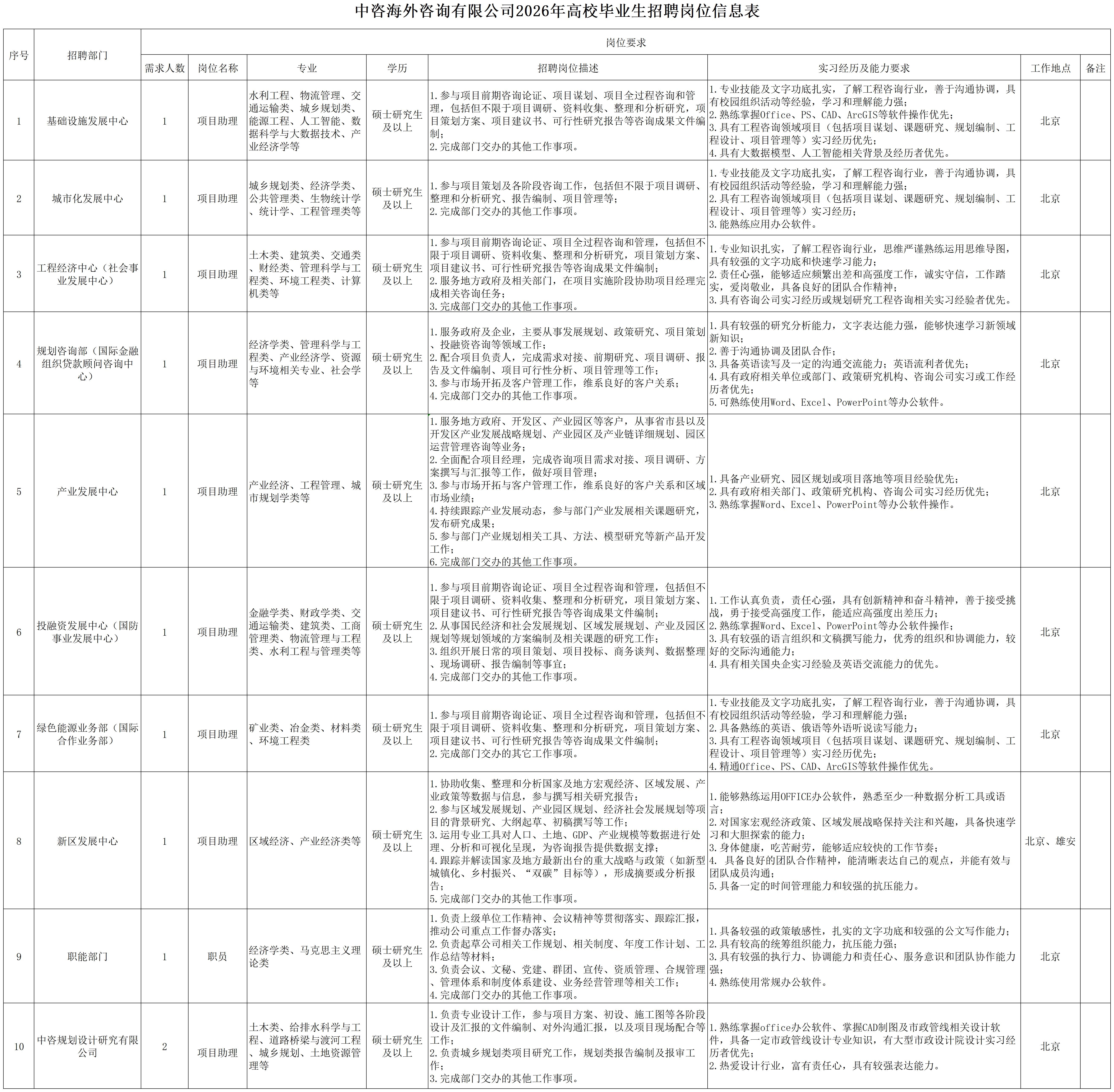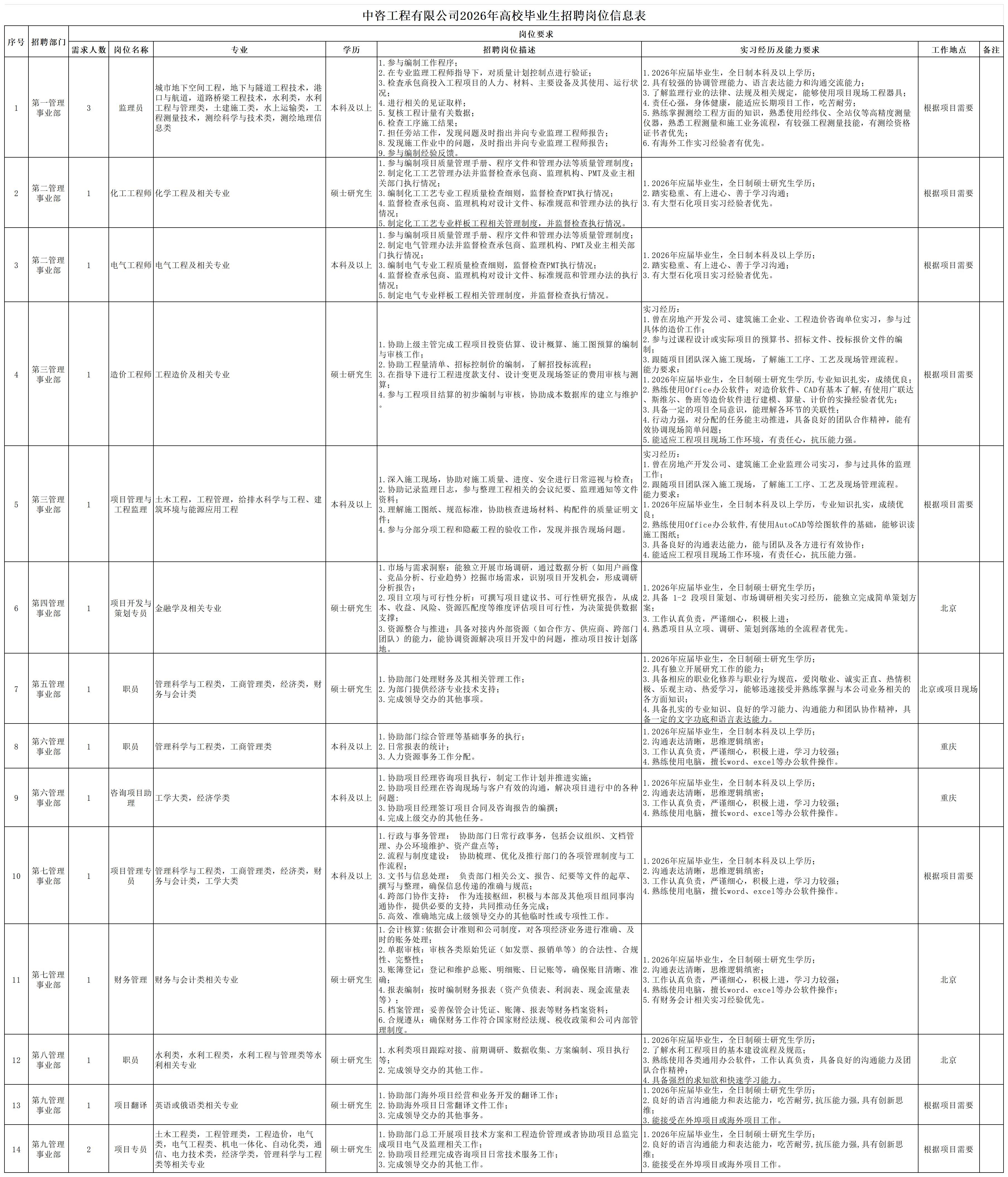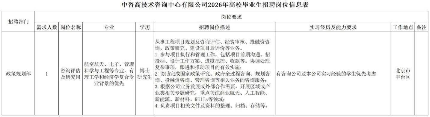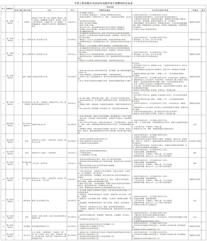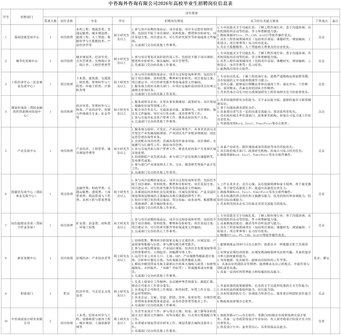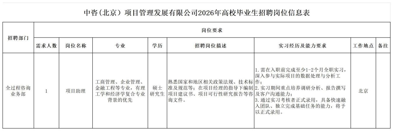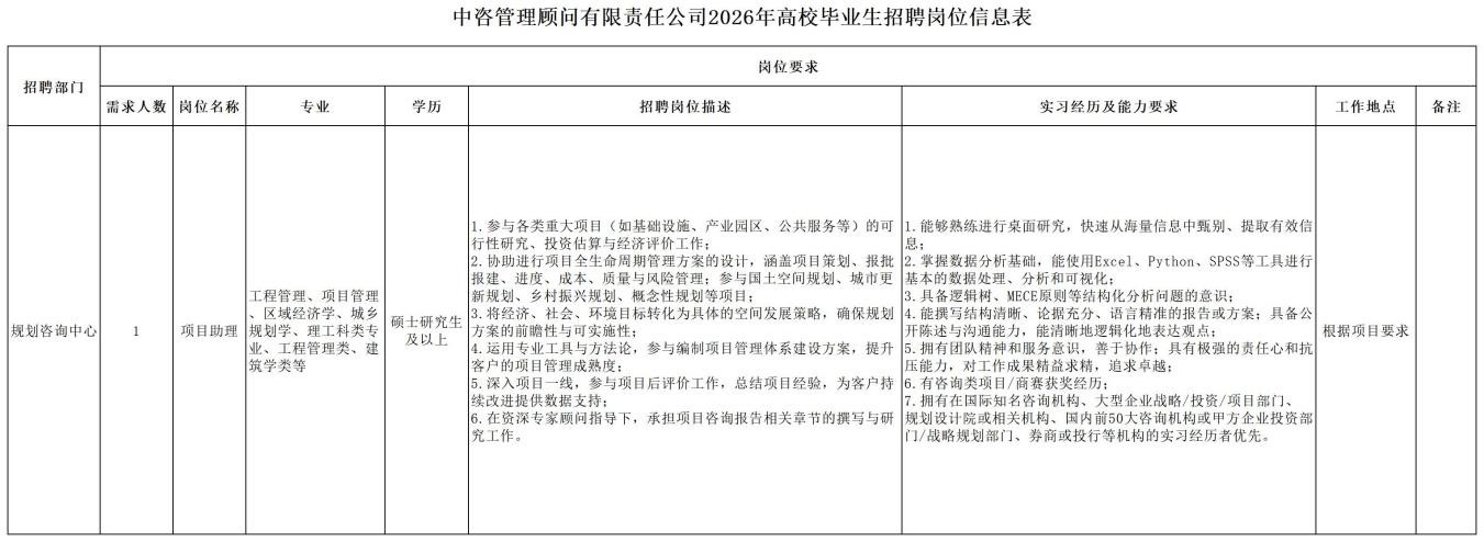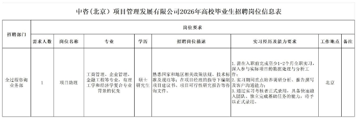 中國國際工程咨詢有限公司所屬企業(yè)2026年校園招聘公告 | ||||