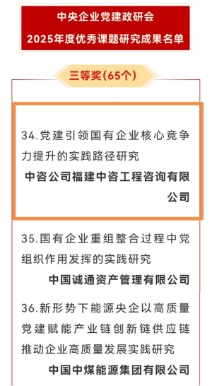 喜訊!中咨公司研究課題榮獲中央企業(yè)黨建政研會2025年度優(yōu)秀課題研究成果三等獎