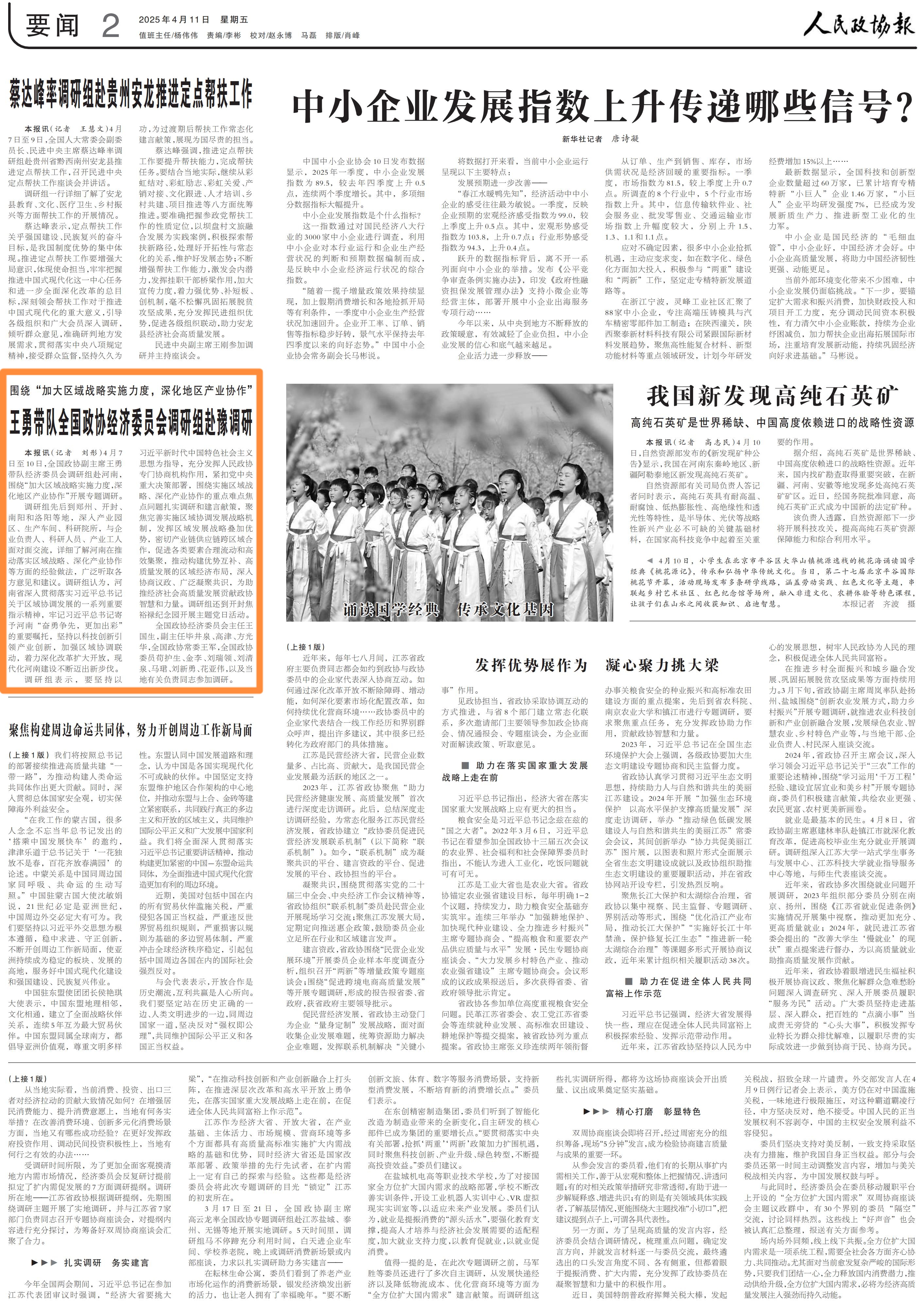 《人民政協(xié)報》 | 王勇帶隊全國政協(xié)經(jīng)濟(jì)委員會調(diào)研組赴豫調(diào)研
