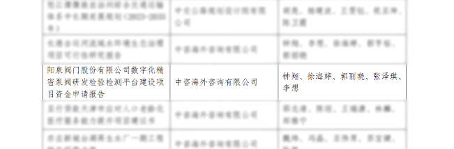 2024年8月,受陽泉閥門股份有限公司委托,中咨海外公司城市化發(fā)展中心承擔了數(shù)字化精密泵閥研發(fā)檢驗檢測平臺重大項目謀劃工作。接到任務后,項目團隊第一時間深入企業(yè)調(diào)研,秉持精益求精的工作原則,解析國家政策導向,科學設計申報方案,建立全流程風險管控機制,提供全方位咨詢服務,確保申報材料精準性與完整性。