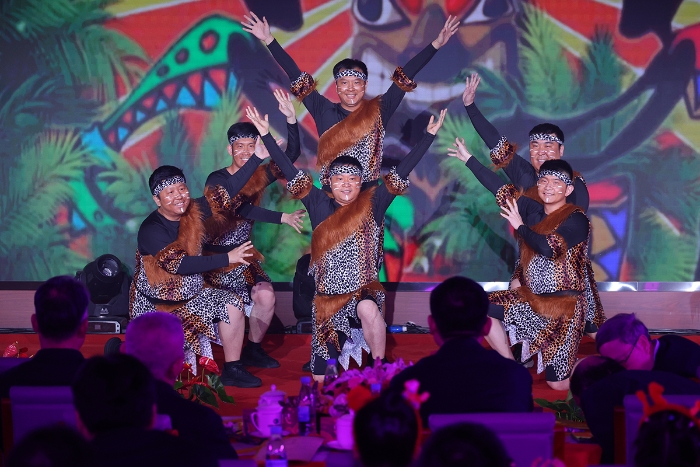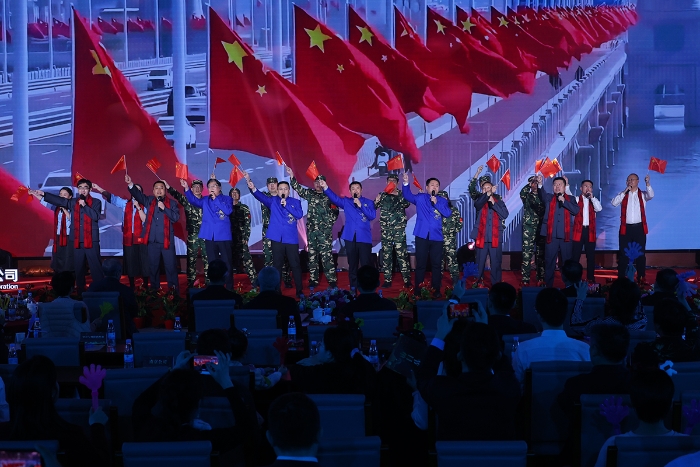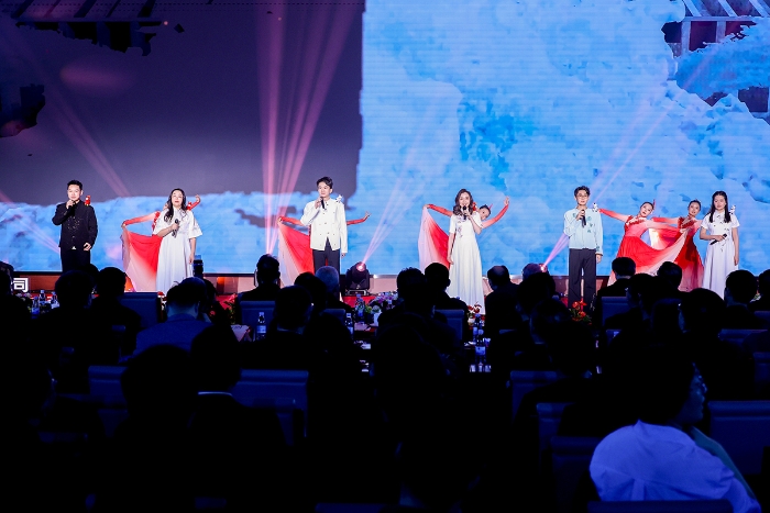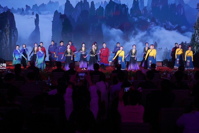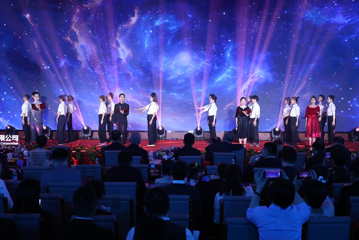 第二篇章,中咨企業IP形象“小智”“小慧”驚喜現身,帶領大家一起“穿越”回公司“十四五”期間服務國家戰略、推動改革發展的難忘歷程。舞蹈串燒《大美祖國行》和《“一帶一路”嘉年華》藝術展現中咨人遍布神州大地和“一帶一路”沿線的奮斗足跡;小品《分身乏術》還原咨詢項目工作場景,展現一線團隊的拼搏進取與團結協作;原創歌曲《追光》與情景朗誦《奔赴山海共創未來》抒發中咨人與時代同行、與國家共進的豪情壯志。