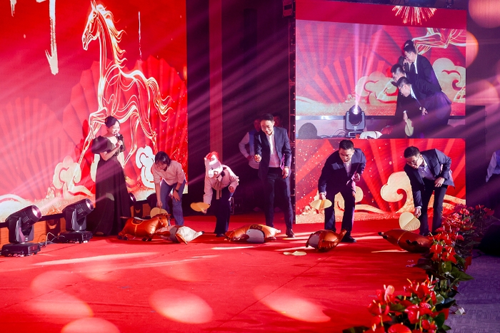 團拜會還設置“趕小馬大賽”“‘馬’上猜成語”等游戲環節,干部職工踴躍參與,現場洋溢歡聲笑語。